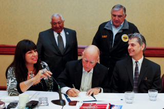 SACRAMENTO – In order to strengthen communication and collaboration between California state government and Native American Tribes, Governor Edmund G. Brown Jr. today issued an Executive Order establishing the position of Governor’s Tribal Advisor in the Office of the Governor. This position will serve as a direct link between the Governor’s Office and tribal governments on matters including legislation, policy and regulation. Governor Brown signed the Executive Order today while attending the TASIN All California Tribes Meeting at the Sheraton Hotel in Sacramento, CA.