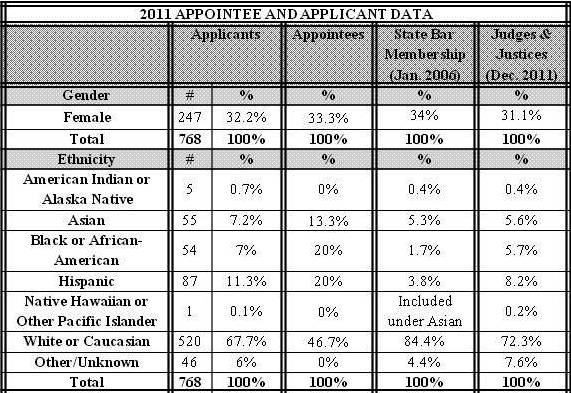 Under SB 56, signed in 2006, the Governor is required to disclose aggregate statewide demographic data provided by all judicial applicants relative to ethnicity and gender each year by March 1.