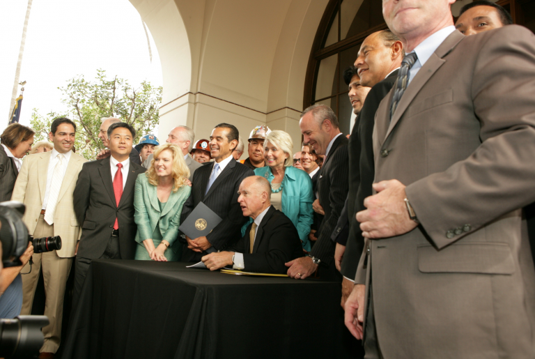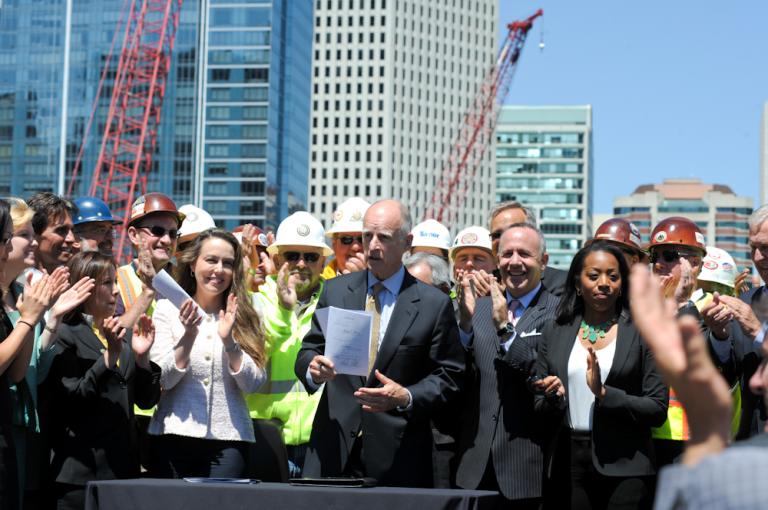 LOS ANGELES – Governor Edmund G. Brown Jr. today signed SB 1029, which will create thousands of new jobs in California by modernizing regional transportation systems and linking them to the state’s future high-speed rail line. The $4.7 billion investment will be matched by an additional $7.9 billion in federal and local dollars for statewide improvements to transportation in California.