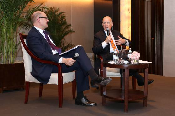 3.) Governor Edmund G. Brown Jr. speaks with Deputy CEO of HSBC China, Chris Davies.