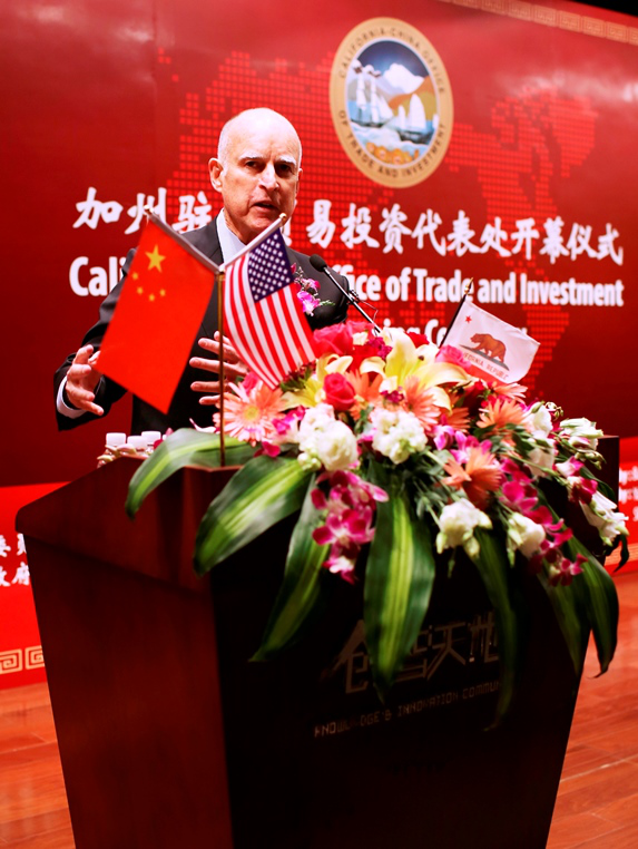 1.) Governor Edmund G. Brown Jr. delivers remarks at the opening of the California-China Office of Trade and Investment in Shanghai.
