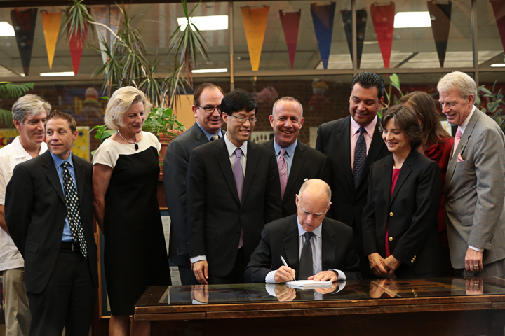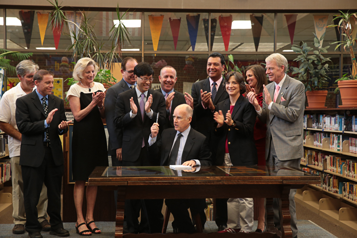 At a signing ceremony at Cahuenga Elementary School in Los Angeles, the Governor was joined by legislative, education, business and civil rights leaders, including Assembly Speaker John A. Pérez. Governor Brown also appeared later in the day at California Middle School in Sacramento with Senate President pro Tem Darrell Steinberg.