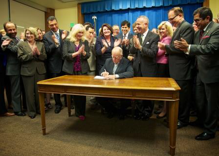 The legislation signed by Governor Brown, AB 1471 by Assemblymember Anthony Rendon (D-Lakewood), replaces the current $11.1 billion water bond on the November ballot. The bipartisan legislation passed the Senate 37-0 and the Assembly 77-2. The new bond includes $7.12 billion in new debt, plus the repurposing of existing unspent bond funds of $425 million for a total of $7.545 billion. None of the repurposed bond funds will be taken from existing projects. The measure will be Proposition 1 on the November ballot.