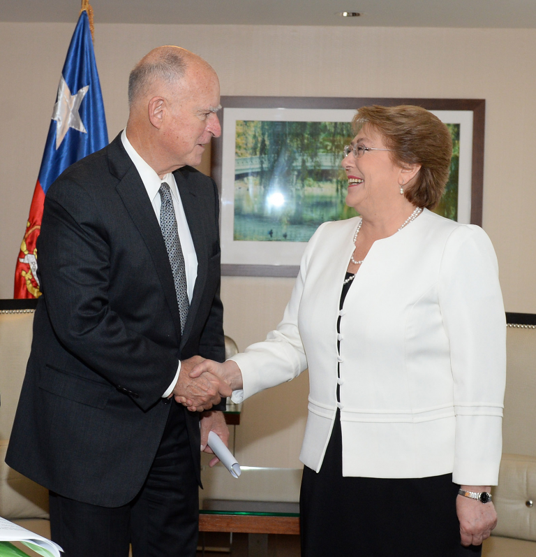 At the meeting with President Bachelet, the leaders signed a joint declaration between Chile and California on climate change, agreeing to collaborate on issues of mutual concern including ocean and forest protection, carbon markets, climate adaptation, water and waste management, and air quality.
