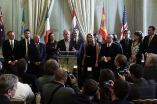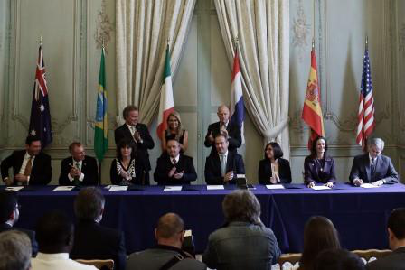 2.) Governor Brown and Ambassador Hartley join with leaders representing seven jurisdictions who signed onto the Under 2 MOU agreement, including: South Australia, Australia; Mato Grosso, Brazil; Basilicata, Italy; Navarra, Spain; and the cities of Austin (TX), Seattle (WA) and Oakland (CA)