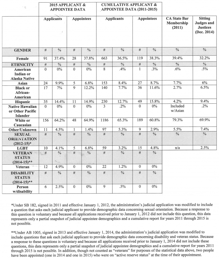 From 2011 through 2015, Governor Brown’s judicial appointees included a number of notable firsts: