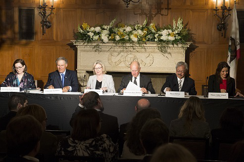 2) Governor Brown signs Pacific Coast Collaborative agreements with Oregon Governor Kate Brown, Washington Governor Jay Inslee, San Francisco Mayor Ed Lee and Oakland Mayor Libby Schaaf.
