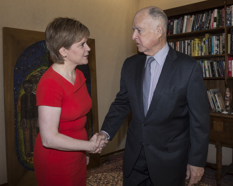 SACRAMENTO – Governor Edmund G. Brown Jr. today met with First Minister of Scotland Nicola Sturgeon to discuss California and Scotland’s ongoing commitment to fight climate change at the subnational level as part of the Under2 Coalition – the global pact among cities, states and countries to limit the increase in global average temperature to below 2 degrees Celsius, the level of potentially catastrophic consequences.