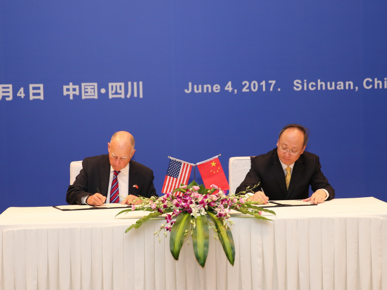 The pact, signed today in Sichuan’s capital city by Governor Brown and Sichuan Governor Yin Li, aims to bolster clean technology innovation and financing in California and Sichuan through the establishment of the California-Sichuan Clean Tech Innovation Center in Chengdu’s Tianfu New Area and development of a California-China Clean Technology Partnership Fund. The agreement also provides incubator space and market access for California clean energy and technology companies in Sichuan.
