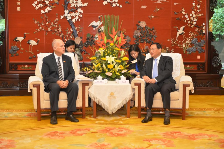 2.) Governor Brown meets with Jiangsu Party Secretary Li Qiang. Photo Credit: Qiu Guohui, Jiangsu Province Foreign Affairs Office.