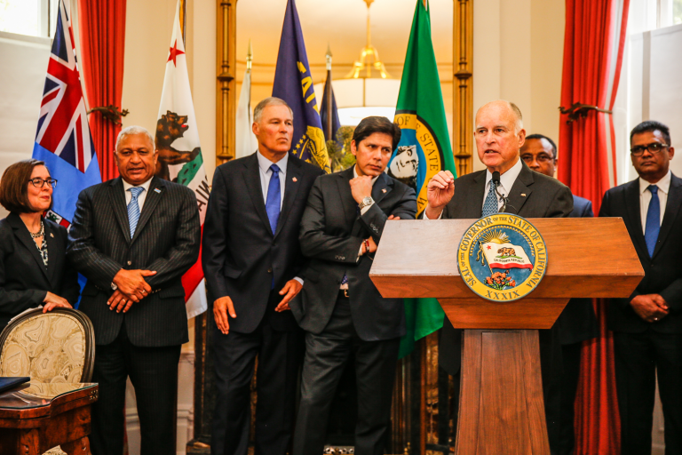 SACRAMENTO – Governor Edmund G. Brown Jr. was named Special Advisor for States and Regions ahead of this year’s United Nations Climate Change Conference (COP 23) by the Prime Minister of Fiji Frank Bainimarama – incoming president of COP 23 – today at a ceremony where Fiji became the latest government to join the Under2 Coalition. Oregon Governor Kate Brown and Washington Governor Jay Inslee – members of the Under2 Coalition and U.S. Climate Alliance – also attended today’s ceremony and announced that they too will attend the COP 23 in Bonn, Germany to represent subnational jurisdictions committed to climate action.