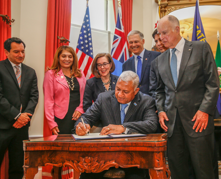 “California is proud to partner with Fiji, an island nation that is experiencing firsthand the impacts of climate change and this year is the leader of the UN Conference of Parties,” said Governor Jerry Brown. “I look forward to taking the next step later this year with Governor Kate Brown and Governor Jay Inslee when we join Prime Minister Bainimarama in Bonn to show that states and regions will fulfill the Paris commitment.”