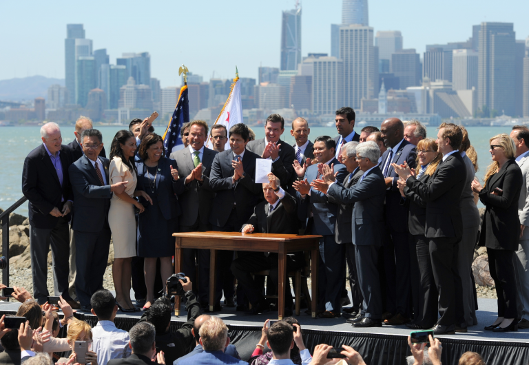 The Governor signed the legislation today on Treasure Island, the same location where Governor Arnold Schwarzenegger signed AB 32 (the California Global Warming Solutions Act of 2006), which authorized the state’s cap-and-trade program more than a decade ago.