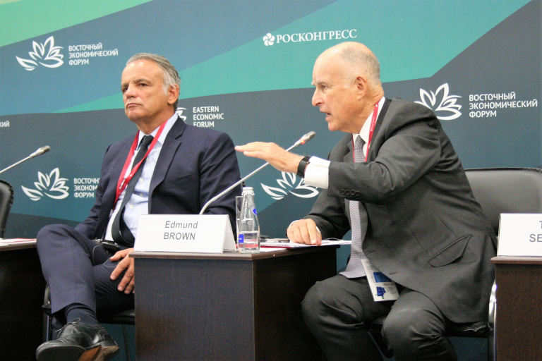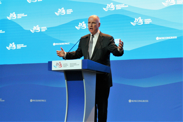 VLADIVOSTOK, Russia – Governor Edmund G. Brown Jr. today joined leaders from Japan, South Korea, Russia, China and more than a dozen other countries at the Eastern Economic Forum in Vladivostok, Russia where he pushed businesses and governments to join forces not just on trade and investment but also on the decarbonization of the economy.