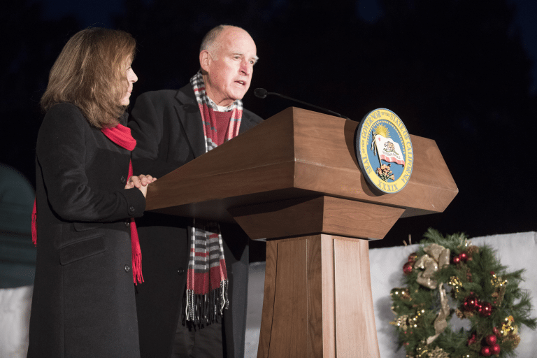 SACRAMENTO – Governor Edmund G. Brown Jr. and First Lady Anne Gust Brown hosted the 86th Annual Capitol Christmas Tree Lighting Ceremony this evening on the West Steps of the State Capitol.