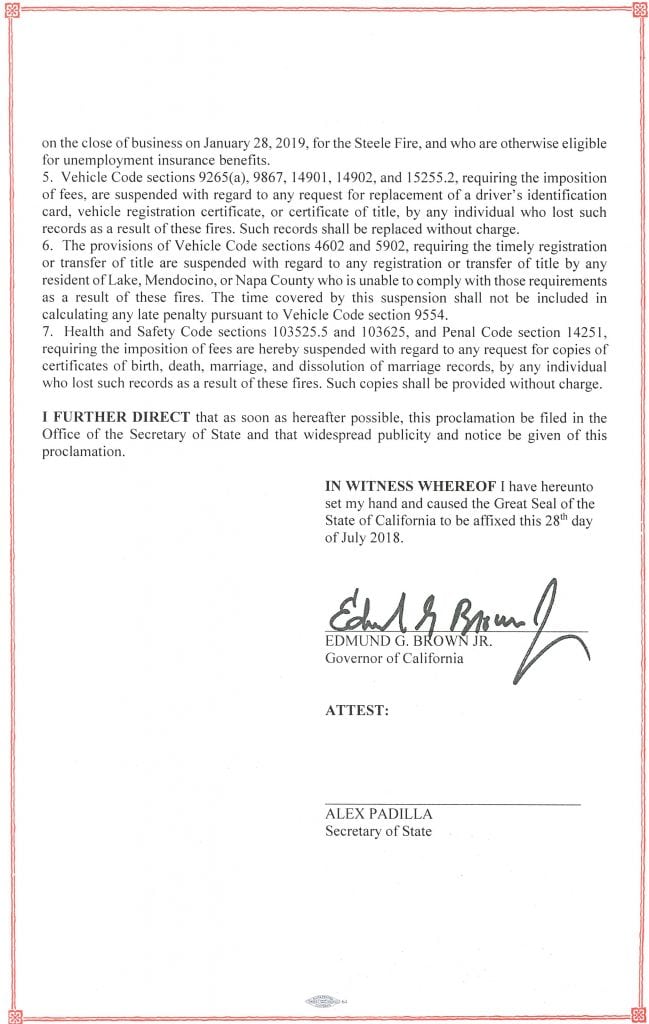 WHEREAS on July 28, 2018, the Steele Fire began burning in Napa County; and